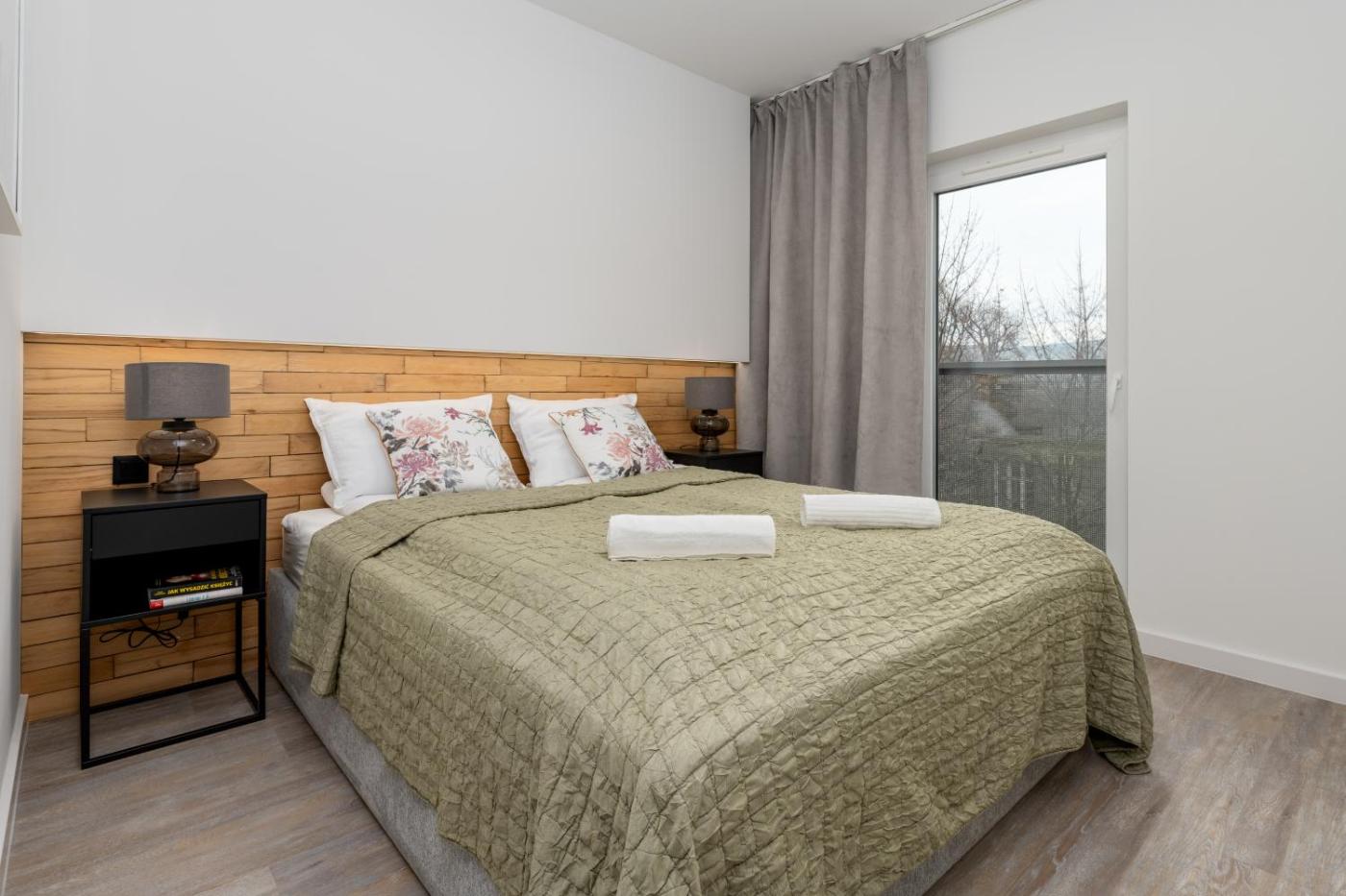Oferta apartamentu obejmuje kilka sypialni (2), salon, kuchnię z pełnym wyposażeniem, w tym lodówką i ekspresem do kawy, a także łazienkę (1) z prysznicem oraz suszarką do włosów. W apartamencie zapewniono ręczniki i pościel.