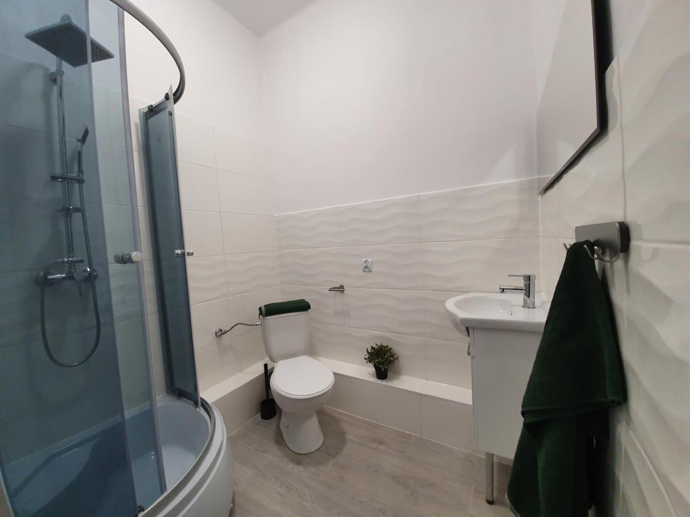 Apartament z 1 sypialnią. This apartment comprises 1 bedroom, a kitchenette and 1 bathroom with a shower. Guests can make meals in the kitchenette that comes with a stovetop, a refrigerator, kitchenware and an electric kettle. The apartment provides a washing machine, a dining area, a wardrobe, parquet floors and a TV. The unit offers 1 bed. Apartament - 2 osobowy. Powierzchnia pokoju ok.: 20 mkw.