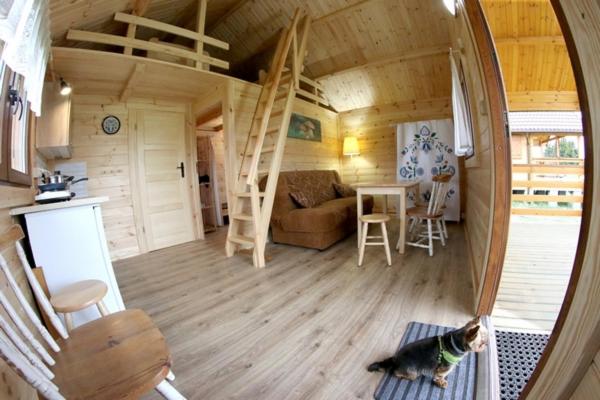 Dom z 2 sypialniami. This holiday home consists of 1 living room, 2 separate bedrooms and 1 bathroom with a shower. Guests will find a stovetop, a refrigerator, kitchenware and an electric kettle in the well-fitted kitchenette. The holiday home also offers a barbecue. The holiday home features a terrace with outdoor furniture and garden views for your convenience. The unit offers 5 beds. Dom wakacyjny - 6 osobowy. Powierzchnia pokoju ok.: 35 mkw.