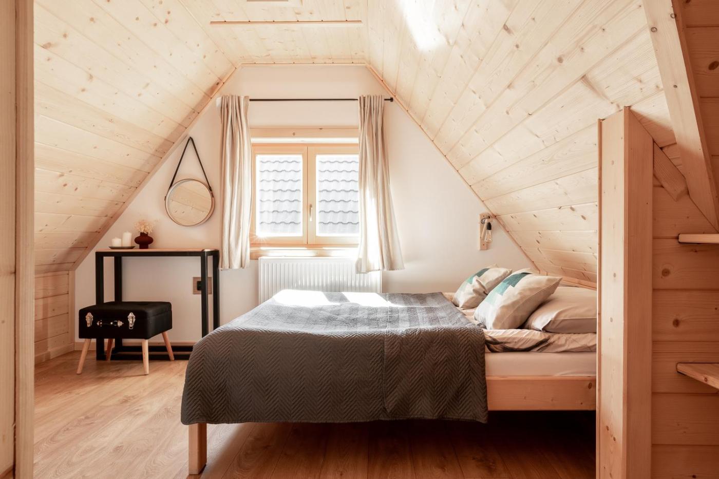 Domek z 2 sypialniami. Ten domek z oddzielnym wejściem mieści salon, 2 oddzielne sypialnie oraz 2 łazienki z prysznicem i suszarką do włosów. W dobrze wyposażonej kuchni zapewniono płytę kuchenną, lodówkę, zmywarkę do naczyń i przybory kuchenne. Goście mogą korzystać ze sprzętu do grillowania. Domek ten oferuje zestaw do parzenia kawy i herbaty, telewizor z płaskim ekranem oraz taras z widokiem na ogród. W tej opcji zakwaterowania zapewniono 4 łóżka. Domek - 6 osobowy. Powierzchnia pokoju ok.: 70 mkw. ;